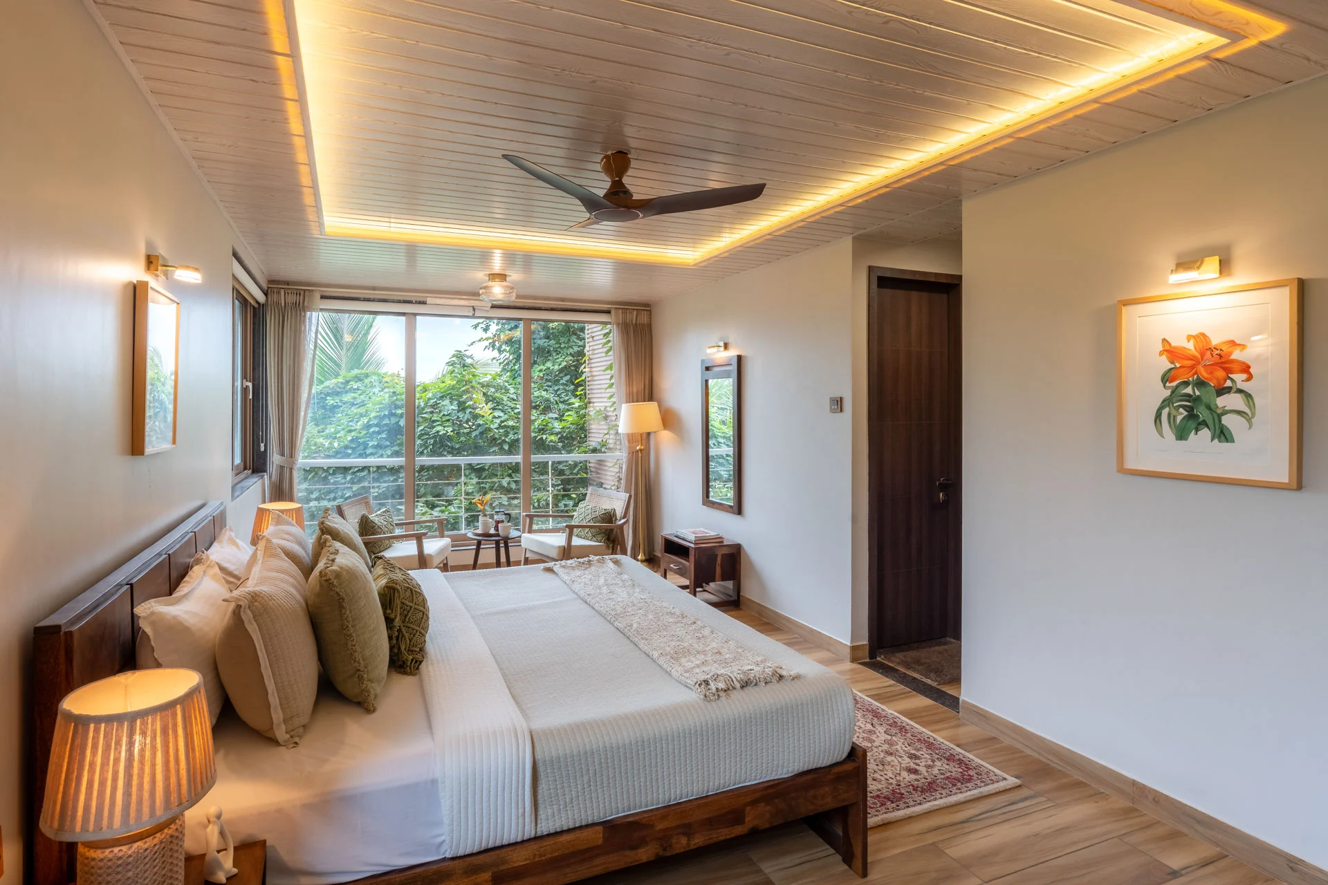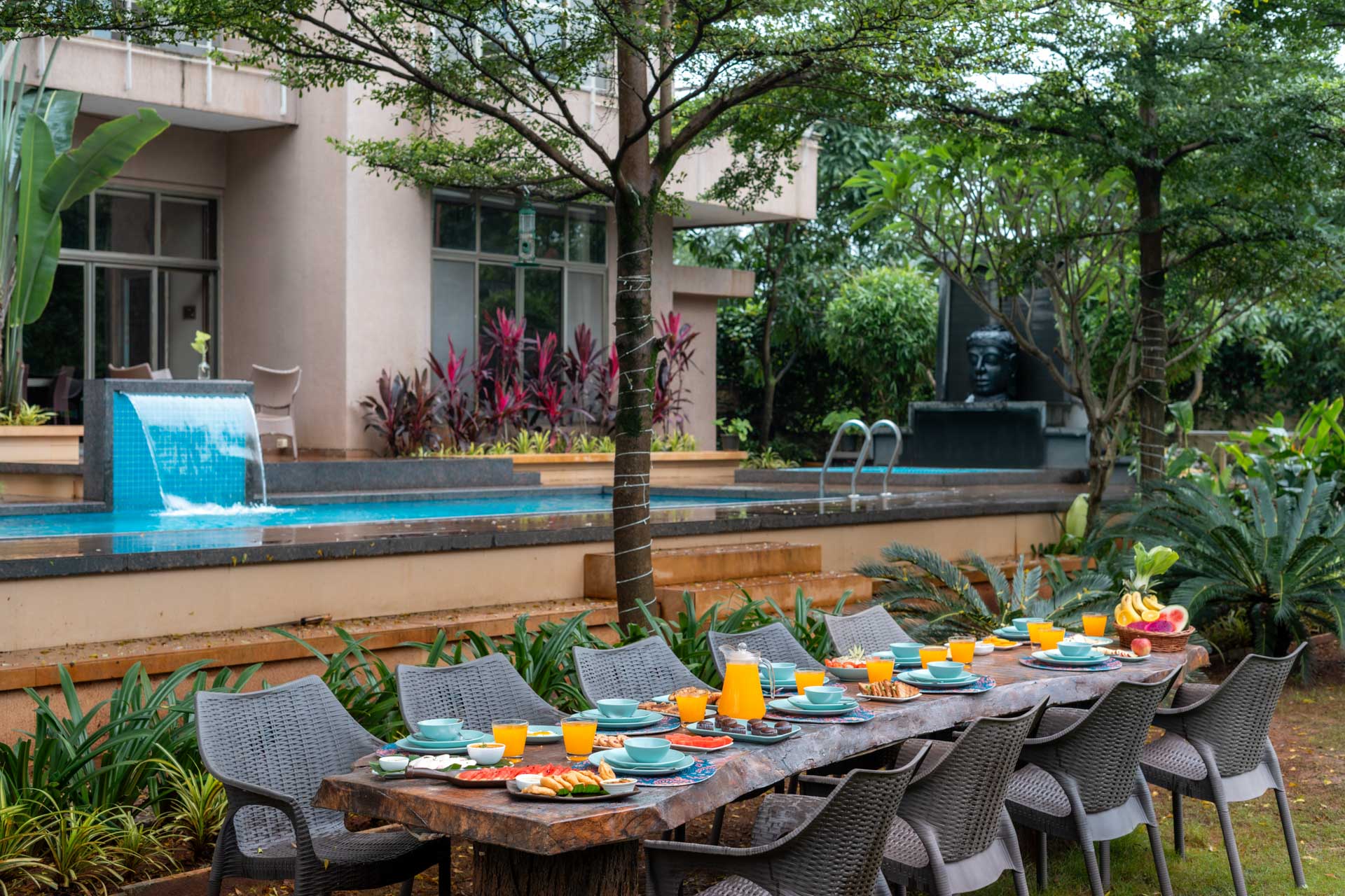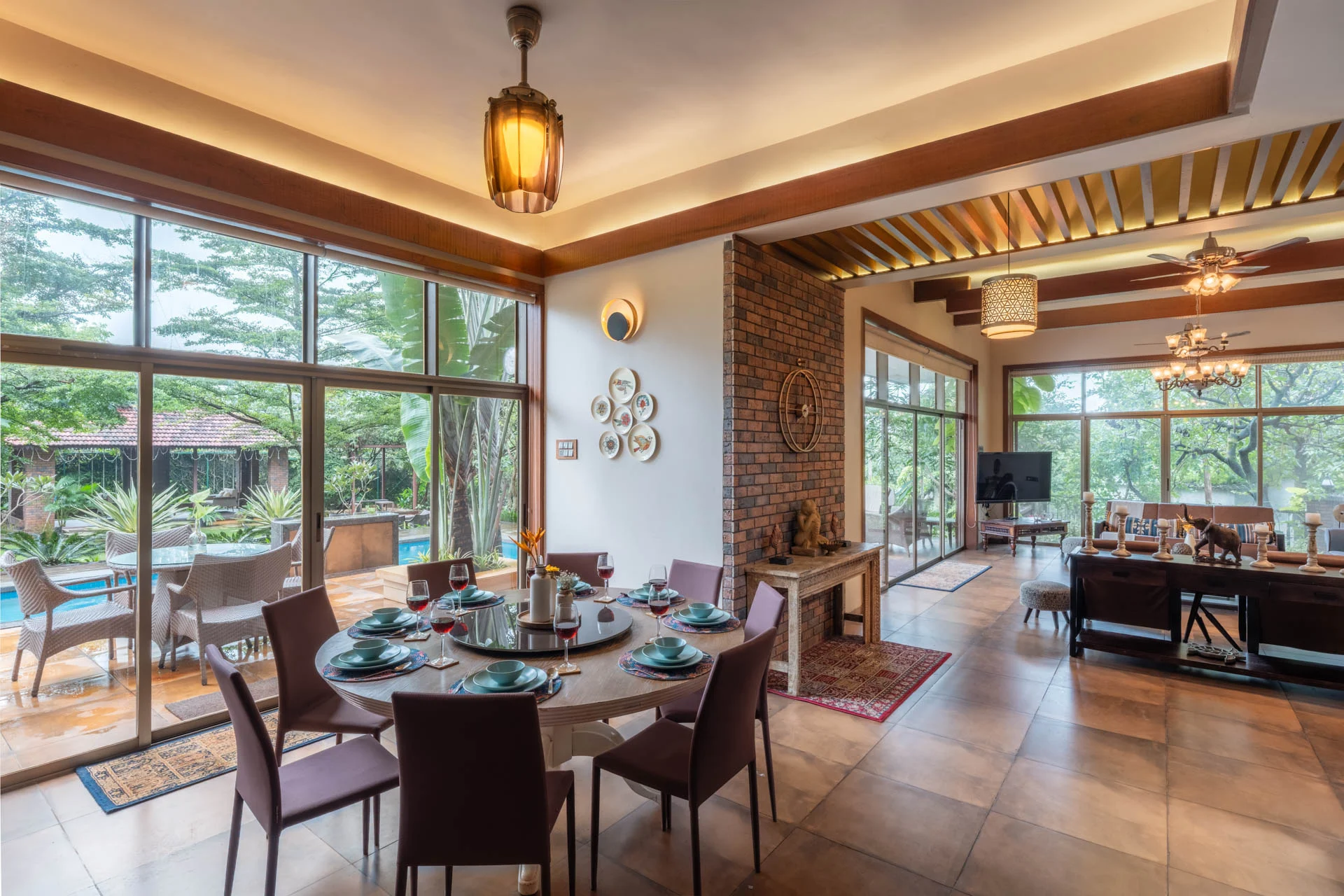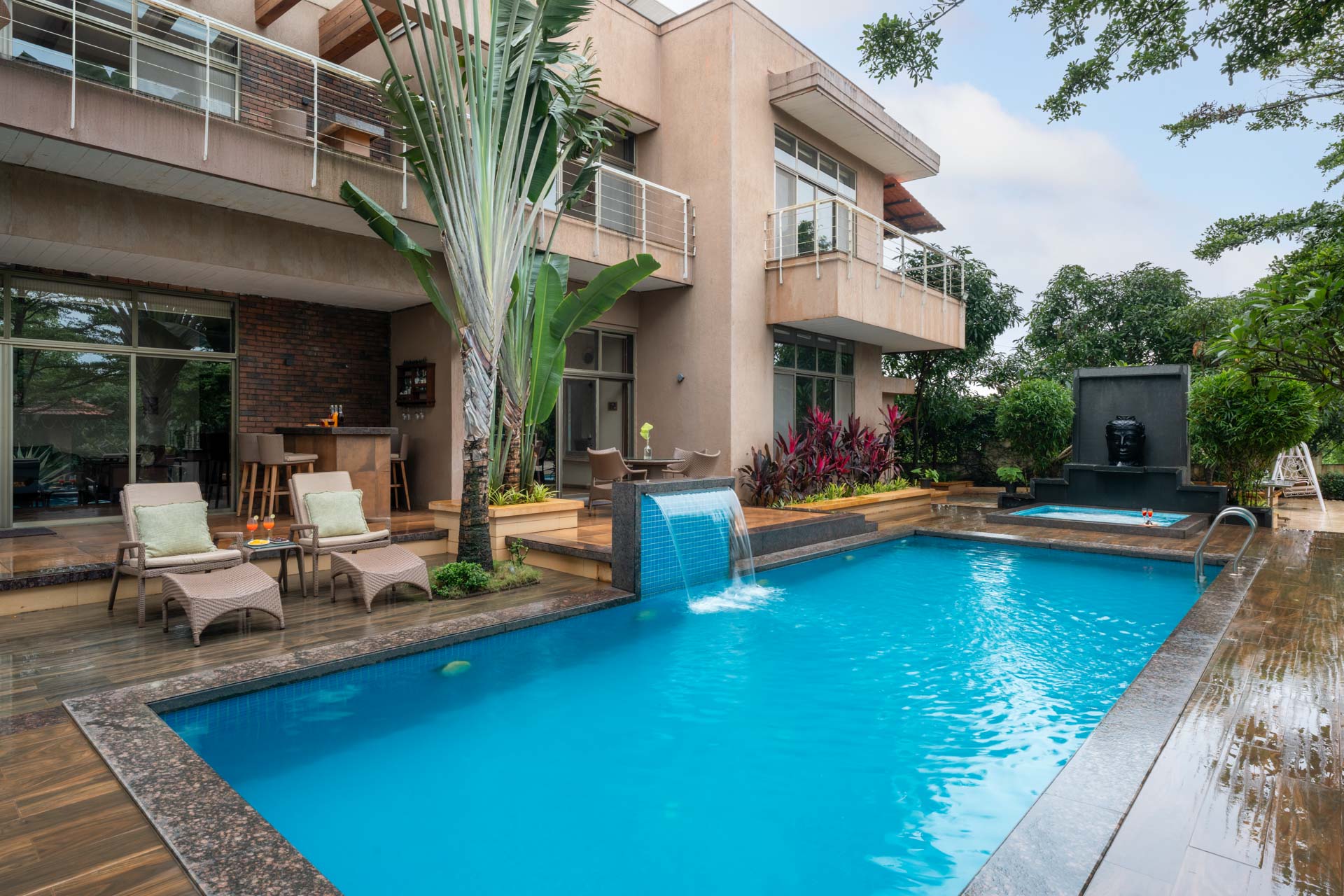 Take a getaway near Mumbai that feels grander, greener and more luxurious than you imagined at this 4BHK pool villa in Karjat. Surrounded by lush forest, this is a senior citizen-friendly and pet-friendly villa in Karjat. Large living areas, dedicated dining space, cozy bedrooms with balconies and backdrop of mountain greenery, this home has everything you need for a comfortable weekend trip. A sparkling blue pool, jacuzzi and a games room gives you enough to unwind and relax from your routine. If you are longing to slow down, just spend some time away with your family, parents and pooch in tow, this is a good pet-friendly villa near Mumbai and Pune. Why Rent This 4BHK Pool Villa in Karjat 1) 3 of the 4 bedrooms have spacious balconies offering beautiful views of the surroundings 2) Open spaces to relax, lounge, take a walk or just sit by the garden 3) Private pool with a water fountain and a jacuzzi beside it 4) An indoor games room and outdoor play area for cricket, badminton, volleyball, etc