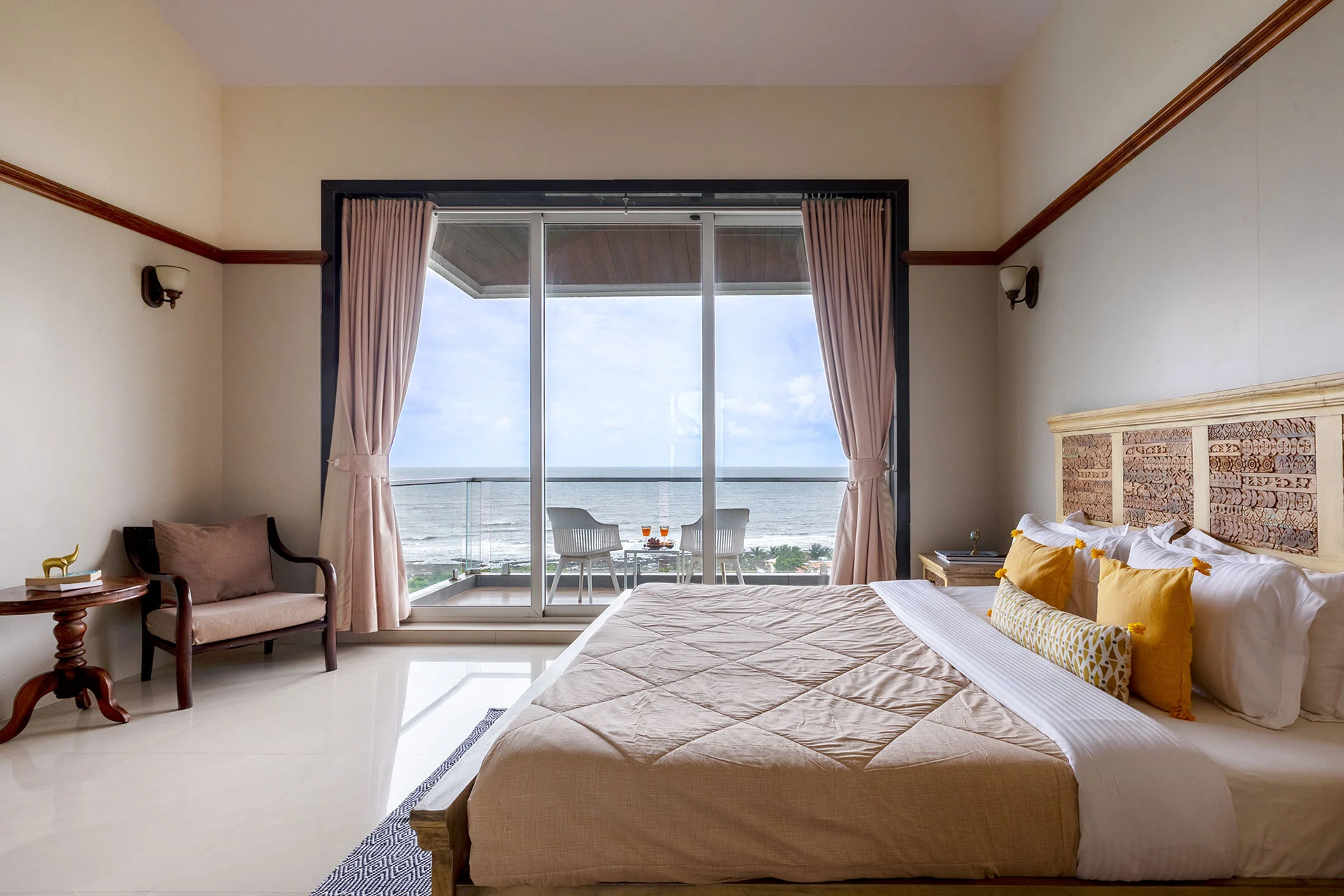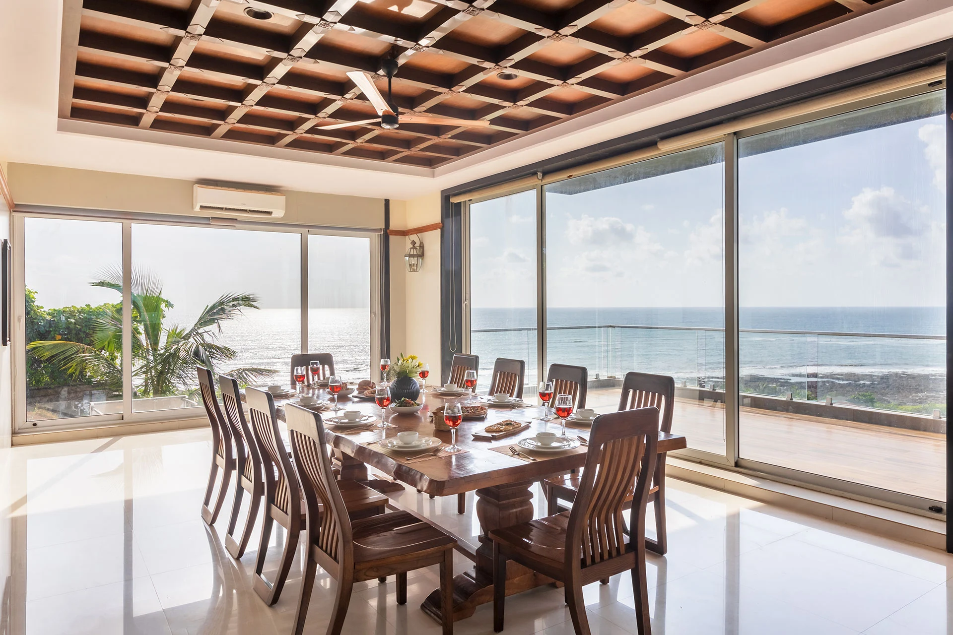A signature luxury villa near Alibaug, Casa Bella in Kashid serves spacious living with panoramic sea views. Set just minutes away from Kashid Beach, this is an expansive 6-BHK infinity pool villa near Alibaug. The outdoor pool that seems to merge with the horizon, a jacuzzi, spa room, indoor games and entertainment spaces, for groups up to 25, it is best to host events and celebrations in Alibaug. Perfect for sun-soaked getaways, this villa near Mumbai brings coastal serenity and luxurious comfort on a vacation. Why Rent This 6BHK Beach Villa in Alibaug 1) All bedrooms feature large balconies that offer soothing views of the ocean 2) Total 9 bathrooms in the villa, out of which two feature a bathtub 3) Two separate living rooms, each equipped with home theatre system and music systems 4) A stunning 56x15ft infinity pool with a jacuzzi adjacent, both facing the ocean horizon 5) Spacious property that can easily accommodate 25 people, perfect to host events, get-togethers and celebrations